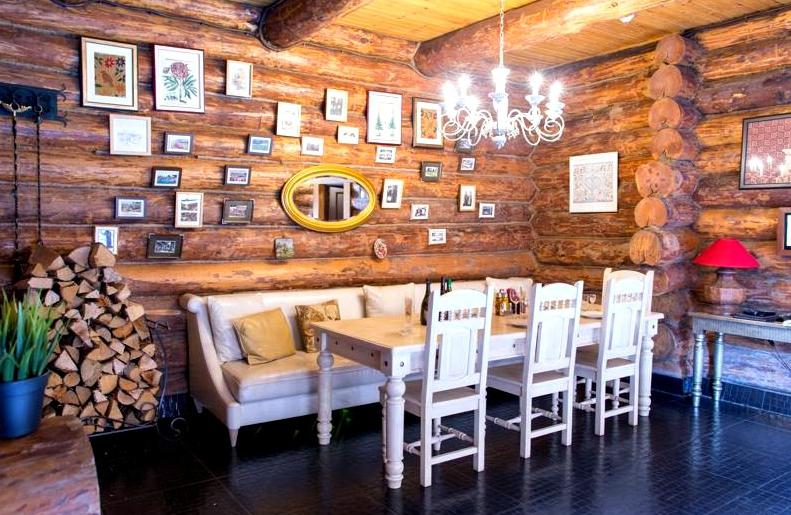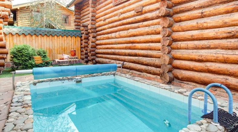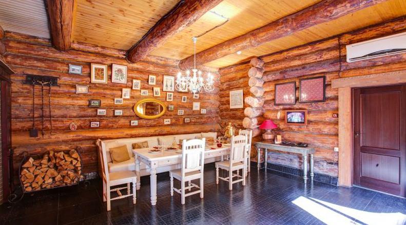 Караоке, теле-, видеоаппаратура, предоставленная для пользования, наилучшим образом скрасит и дополнит любой вид отдыха. Из окна во всю гостиную открывается чудный вид на прекрасным образом оборудованный внутренний двор с подогреваемым бассейном с подсветкой, расположенным на свежем воздухе, а также скрытый от лишних глаз настоящий сеновал. Сруб «Эклектика» идеальным образом сочетает выполненную лучшими индийскими мастерами резную мебель и прекрасный современный дизайн внутреннего помещения.