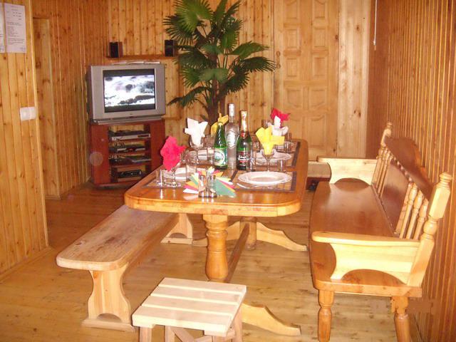 Декорированная в стиле странствий гостиная, позволит мысленно отправиться в бесконечное путешествие по миру. Караоке, спутниковое телевидение, DVD и другая современная аппаратура гармоничным образом дополнят и скрасят отдых, проведенный здесь. Прекрасная домашняя кухня и элитные напитки в широком ассортименте позволят удовлетворить даже самого взыскательного клиента. В срубе есть специально оборудованные для отдыха комнаты, где можно расслабиться и насладиться качественным массажем, выполненным настоящими профессионалами.